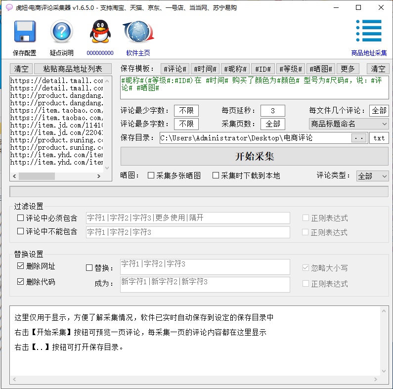 天猫商品宝贝链接评价评论语言和晒图批量采集软件
