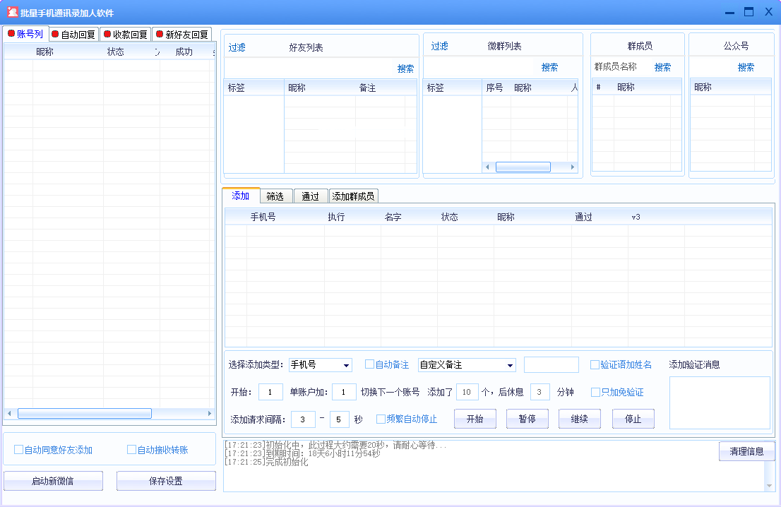 独家pc端加粉软件,多账号循环加粉,新增自动备注功能