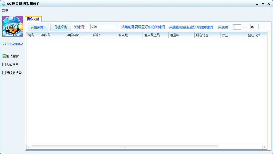 可采集/QQ群号/QQ群名称/QQ群简介/QQ群现有人数/QQ群人数上线/群主QQ号码/所在地/行业/验证方式。